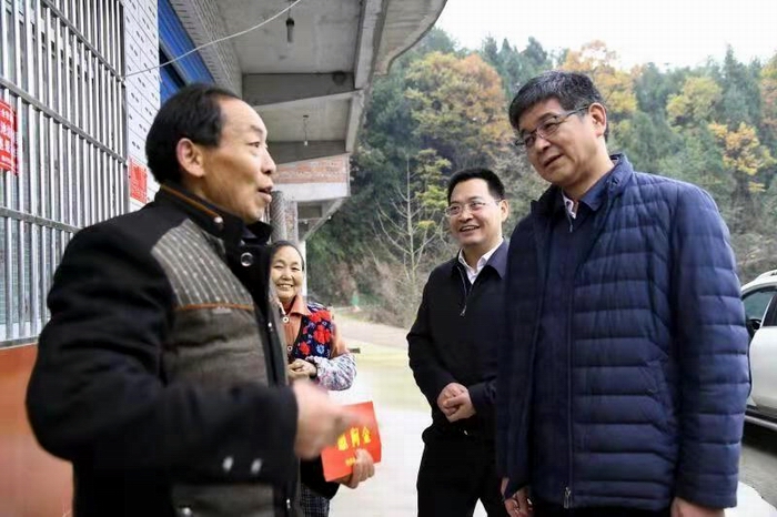 “这几年都发展了哪些产业?收益怎么样?”“村子里变化挺大的”“村上住的还习惯吗?”……李新一行先后来到二龙村、佛岩村亲切看望了校院驻村干部,实地查看校院帮扶项目的推进落实情况,了解了基础设施、产业发展等情况,听取村干部、驻村干部对当地生产、生活情况和开展扶贫工作的汇报。李新一行深入贫困户家中,看望慰问并了解他们的家庭、生活和生产状况,表达省委党校、行政学院的真切关怀。李新与87岁的王洪珍老人亲切交谈、嘘寒问暖,仔细了解老人生活情况和具体困难,李新叮嘱老人要保重身体,安度晚年;来到江六光家,家里窗明几净,柴火在灶台里燃烧得红红火火,正如老江家里现在的日子一样。得知通过发展庭院经济让老江脱了贫、致了富,李新非常高兴。