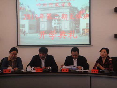 4月16日上午,省委党校、四川行政学院2013年第二期主体班部分班次(第4期新任市厅级领导干部培训班和第17期县处级领导干部进修一班)开学典礼在圆桌会议室举行。省委党校、四川行政学院副校院长李新,省委组织部干训处处长王勇出席开学典礼。开学典礼由教务处处长邓颖主持。