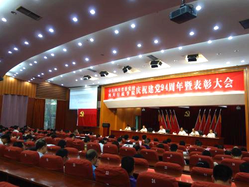 6月30日下午,校院召开庆祝建党94周年暨表彰大会,回顾党的光辉历程,重温入党誓词,表彰2013-2014年度先进基层党组织、优秀共产党员、优秀党务(纪检)工作者和践行“三严三实”优秀党员领导干部。常务副校院长刘毅结合加强领导班子思想政治建设和开展“三严三实”专题教育讲党课。副校院长杨颖主持会议。在家的校院领导出席会议并颁奖。