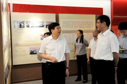 校史陈列室以时间为主线,通过各类文献、史料、奖状、奖杯及图片等馆藏,生动再现了中共四川省委党校建校65年来的发展历程。“学报及相关理论文章在CSSCI的引用情况怎么样”“国际合作交流哪些国家来得较多、总共培训了多少人”……陈列室丰硕的成果展让建发校长兴趣十足。当看到省委党校教研人员在推动形成社会主义市场经济理论方面作出的积极努力时,建发校长感叹当时条件下提出来讨论非常不容易,认为党校在推进党的理论建设进程中发挥了应有作用。当了解到学校是全国党校系统最早具有硕士学位授予权的省级党校之一时,他仔细询问了硕士研究生和在职研究生专业设置、学员来源等有关情况,对研究生工作取得的一系列成绩给予了充分肯定。