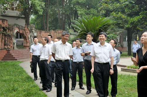 巴蜀文化墙集中反映了四川的历史和文化,底蕴深厚,气势磅礴,极具艺术魅力。在一件件形象生动的雕塑前,在一幅幅为革命事业、改革开放及社会主义建设作出卓越贡献的川籍历史人物画像前,建发校长久久驻足,认真观看并听取讲解员对雕塑历史背景的详细介绍。建发校长指出,文化墙系统展示了四川不同历史时期的光辉历程,再现了在中国共产党领导下,四川人民争取民族独立、实现国家富强、人民幸福的伟大征程。要进一步发挥党校职能作用,引导广大党员积极投身改革事业,发扬“钉钉子”精神,为四川建设发展作出积极贡献。