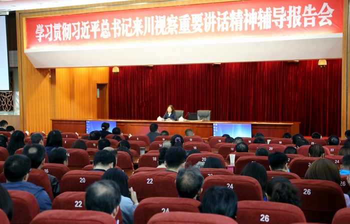 3月13日,校院召开专题辅导报告会,传达学习习近平总书记来川视察重要讲话精神。副校院长陈志全、肖敬军、裴泽庆、邓颖,校院委委员、秘书长郑勇出席会议。校院委委员、机关党委书记唐峭雪主持会议。离退休党支部书记和校院在职党员近300人参加会议。