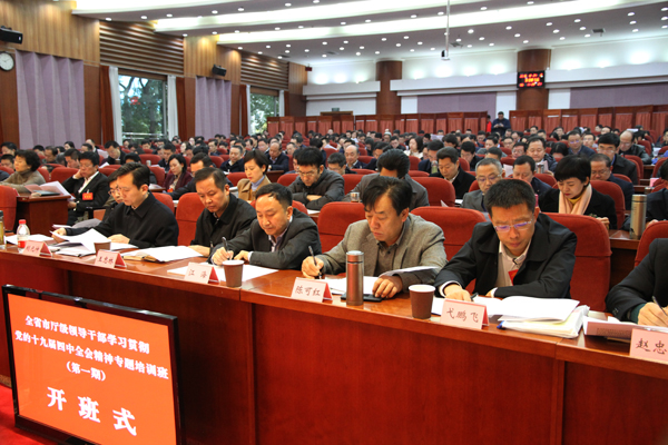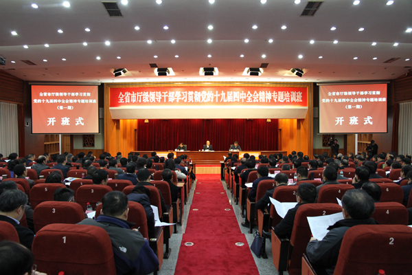12月24日,全省市厅级领导干部学习贯彻党的十九届四中全会精神专题培训班在省委党校开班。省委常委、组织部部长、党校校长王正谱出席开班式并讲话,省委组织部副部长邓涛主持会议,常务副校(院)长李新出席会议。