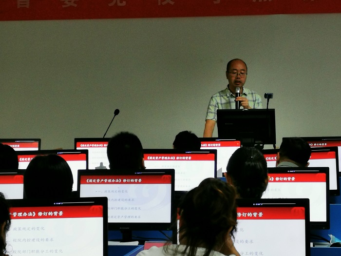 韦金海就校(院)近期新印发的《固定资产管理暂行办法》修订的背景、修订的主要内容向与会人员做了详细说明。张巡对校(院)固定资产信息管理系统为各部门业务人员开展了操作使用培训。