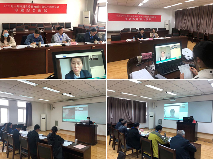 此次网络远程复试我校认真梳理去年工作经验,修订完善并形成了《2021年四川省委党校硕士研究生复试工作方案》。该方案针对网络复试的要求和特点,统筹考虑疫情防控和党校实际,认真制定了“疫情防控工作方案”“舆情防控工作方案”“网络复试应急预案”等具体实施方案,落实好了各项措施保障,做好了突发情况下的应急处置准备。为扎实做好复试工作,我校深入分析了网络远程复试的特点和风险,科学设计复试流程,在制度机制和技术手段上强化落实各项管理措施。一是考生在正式复试前签订了《诚信复试承诺书》,确保提交材料真实有效,复试全程恪守诚信。二是研究生部会同信息技术部和网络复试平台运营方对相关工作人员进行了综合培训,并在培训后组织了模拟演练和全方位的功能测试,确保各项技术指标达到要求,保证网络远程复试能够安全顺利进行。三是复试过程中认真贯彻落实“双机位、两识别、三随机”等工作机制,多措并举严格复试过程管理,确保复试科学、公平、公正。四是在复试工作中进一步加强了过程监管,校纪检监察工作人员通过现场巡查、抽查等方式,对复试进行监管,及时纠正不规范行为,复试全过程采用线上、线下两套方式录音录像以备复查。