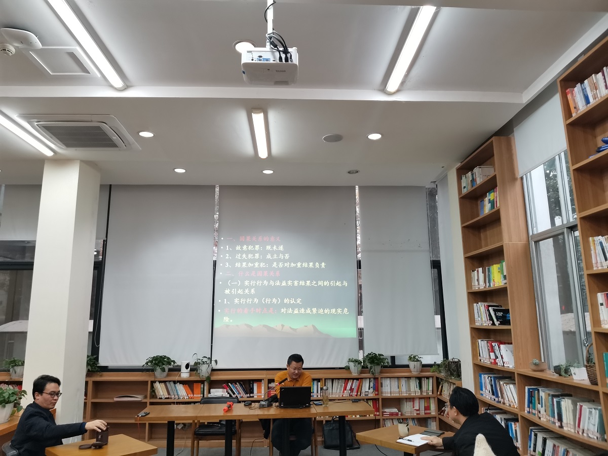 11月27日下午,法学教研部(JM中心)举行蜀光法学讲坛第九讲专题讲座。本次主讲人是西南财经大学法学院胡东飞教授,主题是刑法因果关系的认定及刑法主观题答题技巧。法学教研部主任吴涛、副主任胡业勋,2019级、2020级法律硕士研究生参加讲座,吴涛主持讲座。