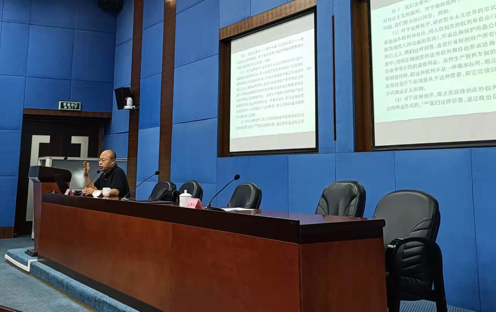 讲座信息量大,学术性强。林进平分饰多角,转换自如,以思辨的对话形式展示出不同观点的激烈碰撞,为同学们学习马克思思想提供了更宽阔的视野与更深刻的思考路径。