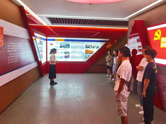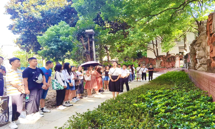 9月7日下午,我校青年马克思主义志愿者宣讲团为89名2021级硕士研究生新生上了“爱校荣校教育”第一课——参观校史陈列室、巴蜀文化墙和四川人杰画廊,研究生部党总支书记刘强及研究生部2位老师参加此次活动,2021级全体硕士研究生到场聆听学习。