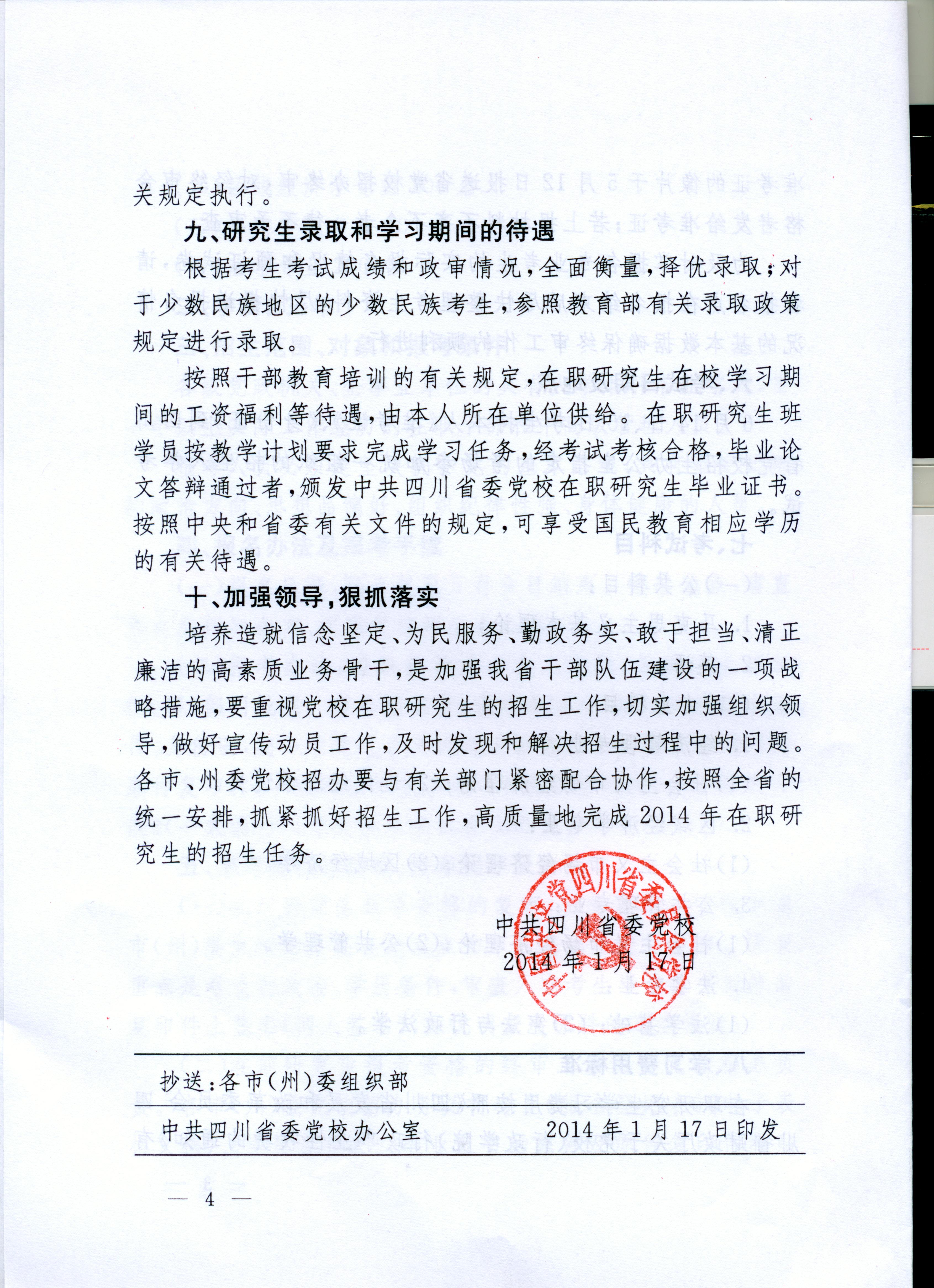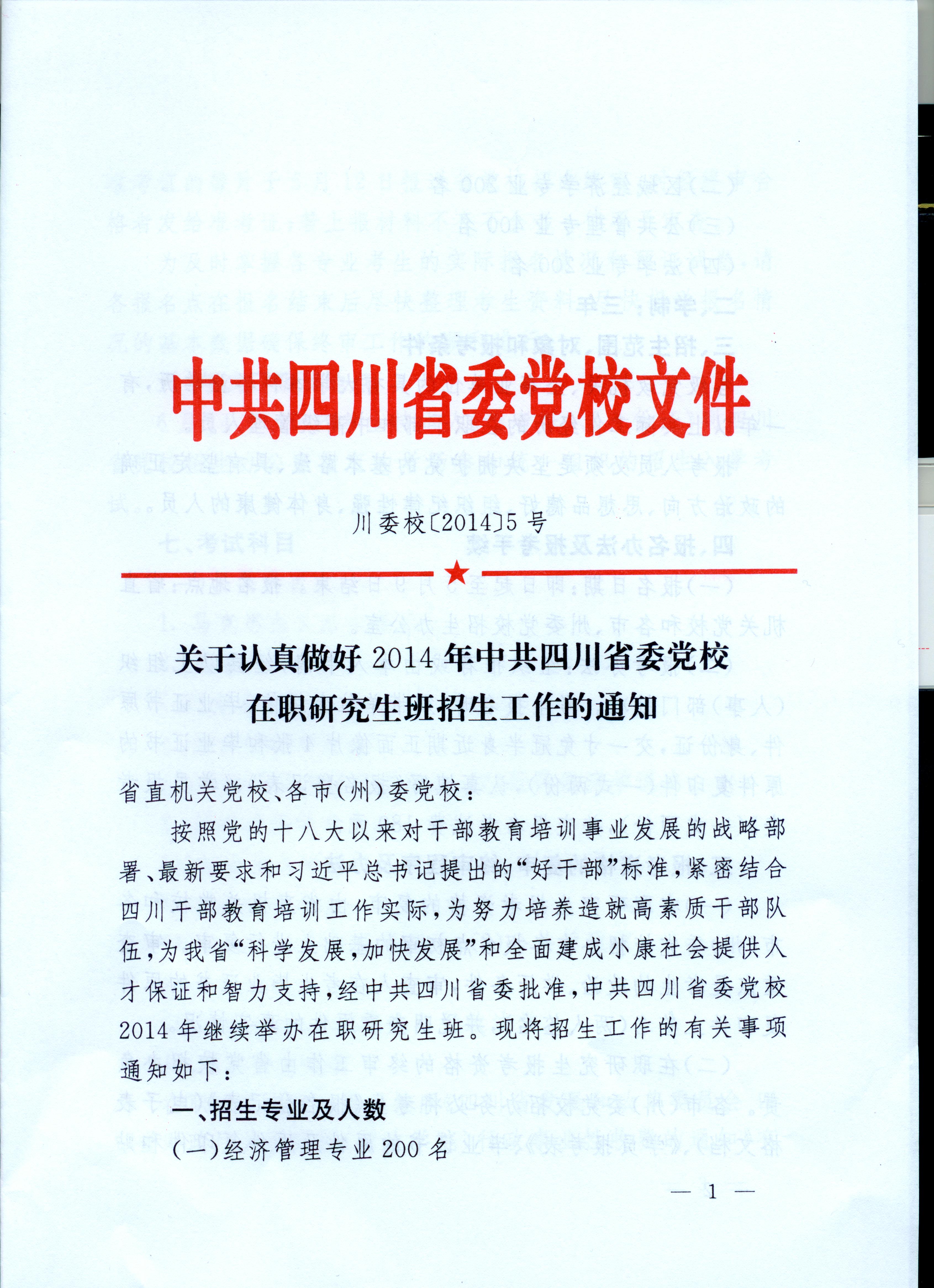 关于认真做好2014年中共四川省委党校在职研究生班招生工作的通知