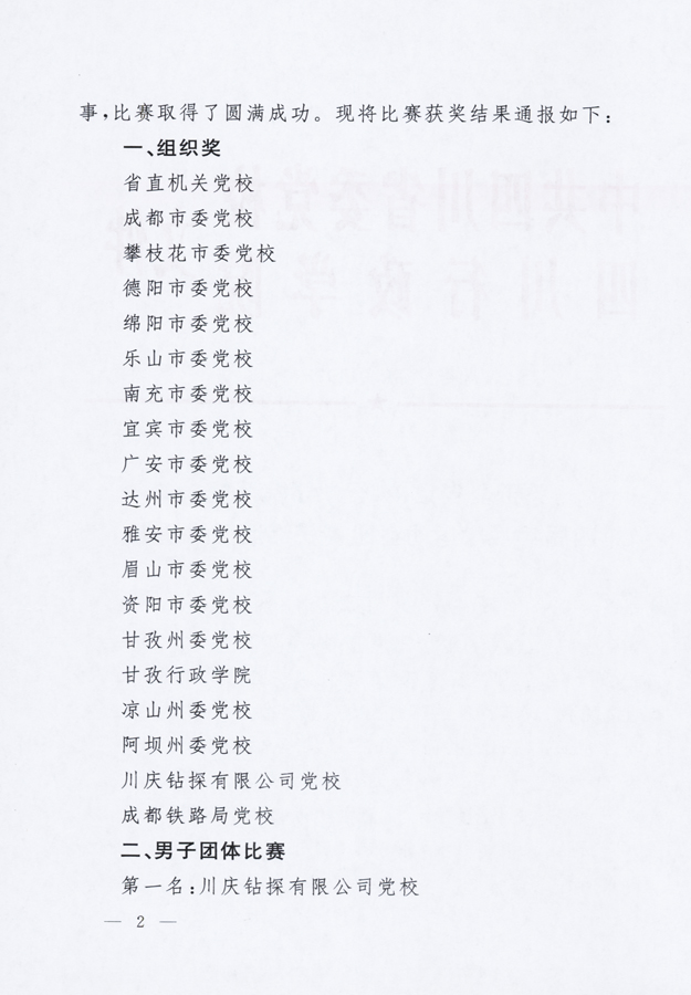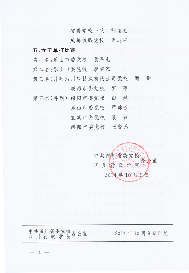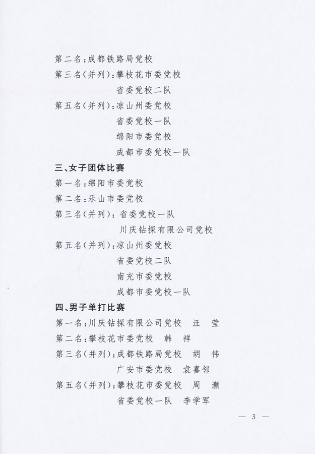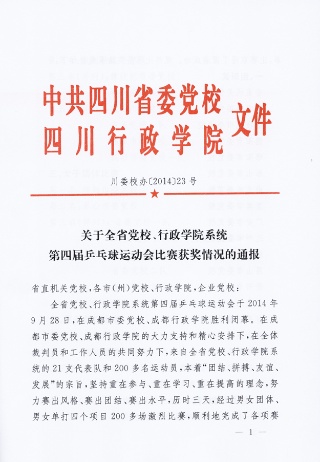 关于全省党校、行政学院系统第四届乒乓球运动会比赛获奖情况的通报