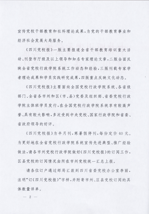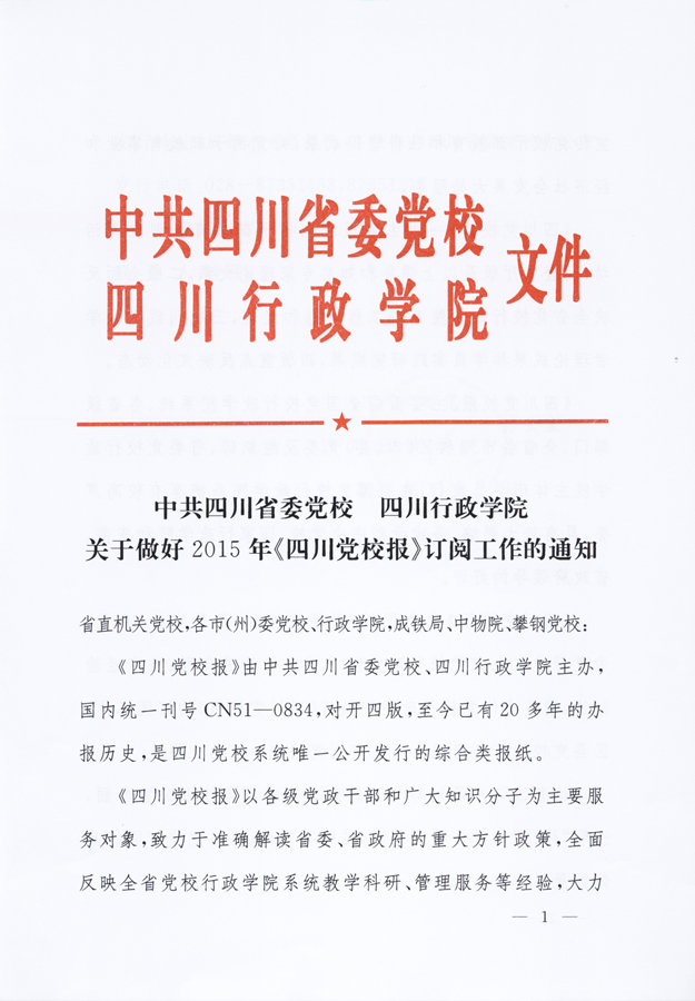 关于做好2015年《四川党校报》订阅工作的通知