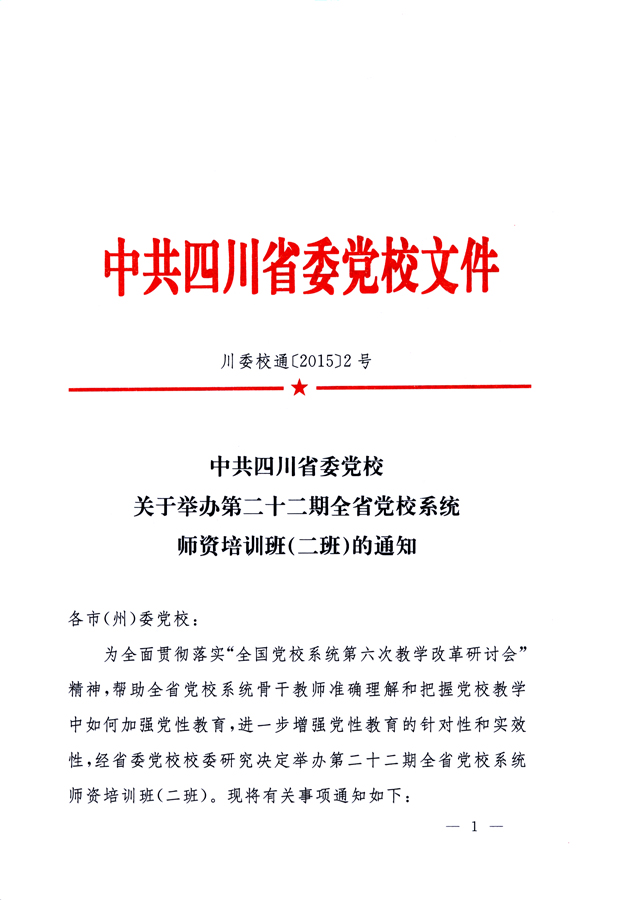 关于举办第二十二期全省党校系统师资培训班(二班)的通知