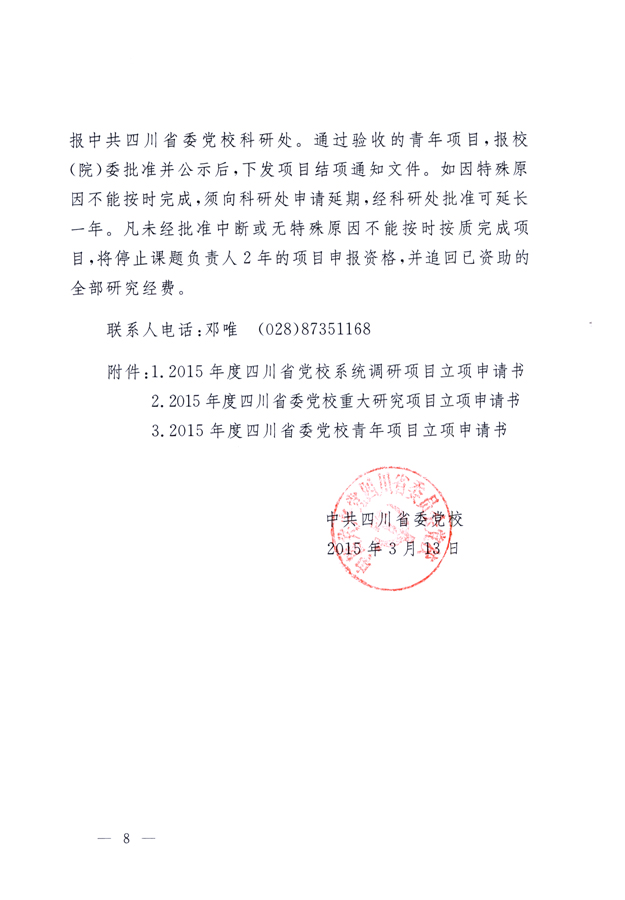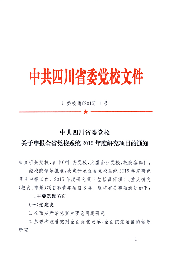 1.2015年度四川省党校系统调研项目立项申请书;2.2015年度四川省委党校重大研究项目立项申请书;3.2015年度四川省委党校青年项目立项申请书