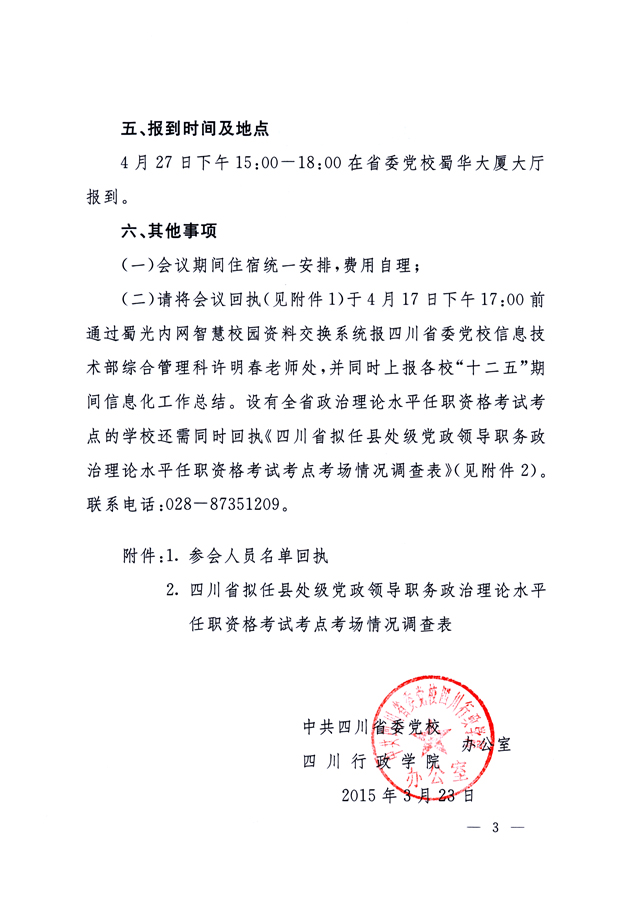 1.参会人员名单回执;2.四川省拟任县处级党政领导职务政治理论水平任职资格考试考点考场情况调查表