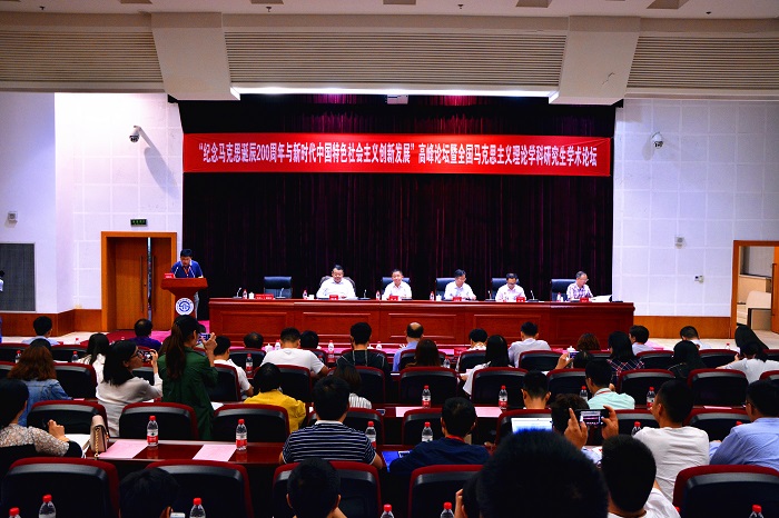 5月19日,由我校马克思主义学院与西南财经大学马克思主义学院共同举办的“马克思诞辰200周年与新时代中国特色社会主义创新发展”高峰论坛暨全国马克思主义理论学科研究生学术论坛在西南财经大学柳林校区腾骧楼举行。副校院长李章忠出席论坛开幕式并致辞。