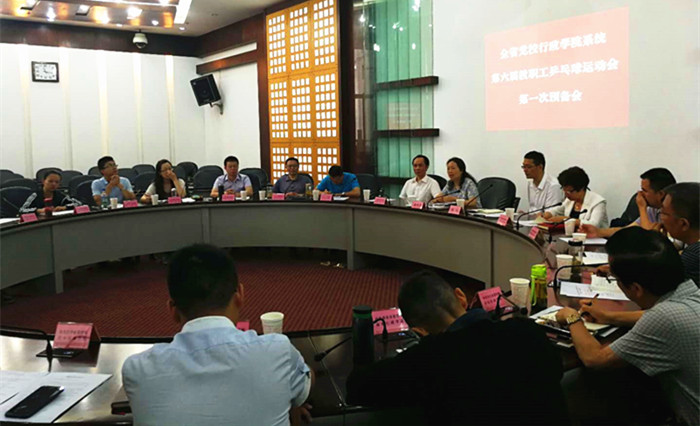 6月15日上午,由中共四川省委党校四川行政学院主办、中共资阳市委党校资阳行政学院承办的全省党校行政学院系统第六届教职工乒乓球运动会第一次预备会,在校院蜀光大厦一楼圆桌会议室召开。校院务委员、机关党委书记唐峭雪出席会议并讲话。各市州党校行政学院(大型企业党校)常务副校院长及领队出席会议,机关党委专职副书记魏波主持。