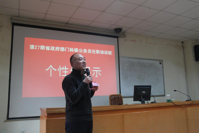 11月19日下午,第27期省政府部门科级公务员任职培训班开展个性化展示并选举班委成立班委会。活动由班主任向仲梅、李光勇主持。