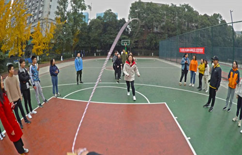 此次活动共有四个项目:踢毽子比赛、三人四足接力赛、心心相印、跳大绳。在踢毽子比赛中,可以一个人踢满十五个也可以互相踢满十五个,这个项目不仅展现了个人的能力,也更体现出团队协作的魅力。在这些项目中最体现团队精神的就是跳大绳,这个项目需要全组成员参与,两个人摇绳,其他组员依次进出,有一个人失误就会影响整队的进程,而且三分钟时间很考验同学们的体力,但是最后同学们都坚持下来了,还有同学中途快速的替换了摇绳的同学,这充分体现了团队精神。除此之外,其他项目也深受同学们喜爱,现场欢笑声、加油声不断。