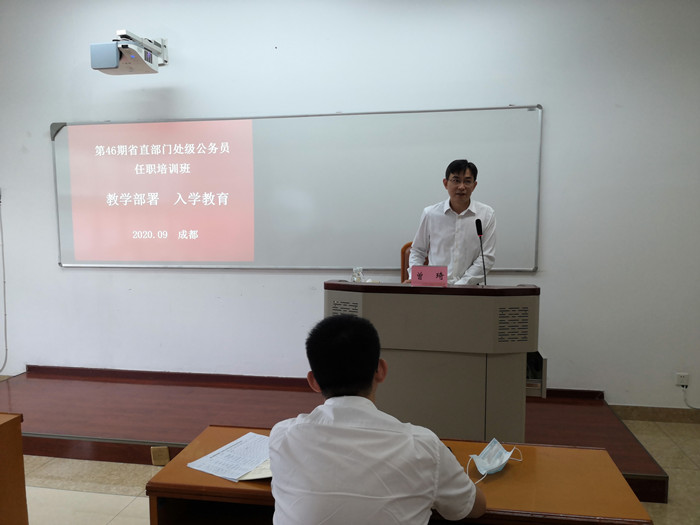 培训部主任曾琦重点介绍本期班次教学安排并进行了入学教育,他指出,此次培训以党的理论教育和党性教育为主课,开展专题学习和研讨交流,目的是着力提高省直部门处级领导干部的政治素养、理论水平和专业能力。要求大家在正心修身中收获成长,在学思践悟中提升能力,在丰富活动中体验学习,实现好“思想、状态、生活方式”三个转变。他强调,根据中央组织部印发的《干部教育培训学员管理规定》和中共四川省委组织部《关于在干部教育培训中进一步加强学员管理》的通知精神,要求进一步规范学员管理、严肃培训纪律、切实改进学风、提高培训实效,在疫情防控常态化的特殊时期,处理好工学矛盾,更加自觉遵守相关纪律规定,树立学员的良好形象。