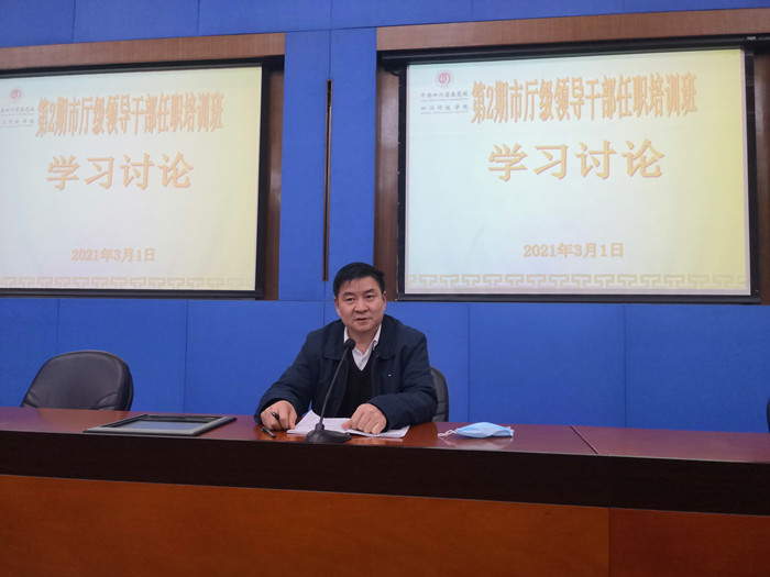 3月1日下午,省委常委、组织部长、党校校长于立军在省委党校2021年春季学习开学典礼上作了重要讲话,参加第二期市厅任职培训班的38位学员赓即进行了深入学习、认真讨论。8名学员代表发言,一致认为,立军部长的讲话通篇贯穿学习习近平新时代中国特色社会主义思想这根主线,紧紧围绕学习贯彻党的十九届五中全会和省委十一届八次全会精神这个重点,对新发展阶段、新发展理念、新发展格局进行深刻精辟的解读,对四川“十四五”发展的思路、目标任务、战略重点进行了全面讲解,并对干部作风和学风提出了明确要求,大家认为立军部长的讲话把握大势,主题鲜明,紧扣四川实际,是一篇高屋建瓴、内涵丰富深刻的辅导报告,具有很强的政治性、思想性、针对性、指导性,学员们纷纷表示,将深入学习贯彻好立军部长的讲话精神,珍惜在省委党校学习的难得机会,加强党性修养,锤炼过硬本领,在四川现代化建设新征程中担当作为、建功立业,不负组织培养和人民希望。