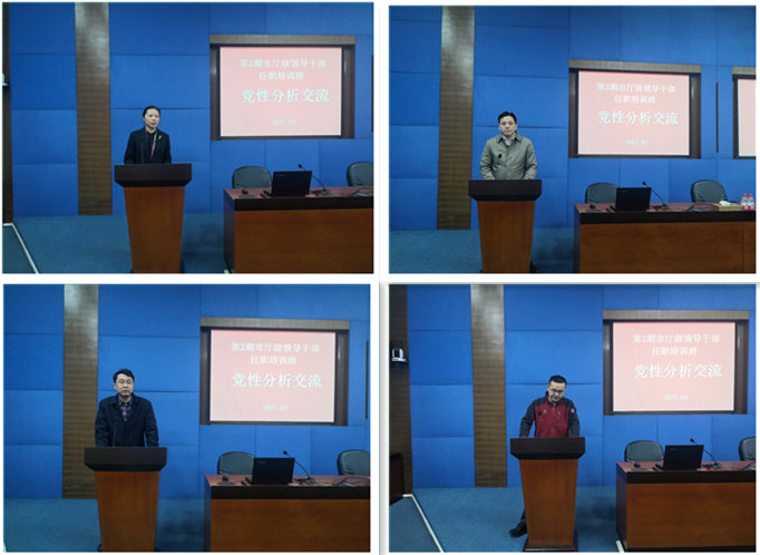 3月26日,第2期市厅级领导干部任职培训班召开全班党性分析交流会,深入查找问题,深刻剖析原因,提出整改措施,起到了深化思想认识、锤炼党性修养的目的。党性分析交流会由党支部书记、班长张健主持。省地方金融管理局的帅旭学员、省公务服务中心的袁平贵学员、省水产局何强学员、省纪委驻省检察院纪检监察组的蒋敏学员分别代表四个小组作了党性分析发言,省委党校公共管理教研部主任杨继荣教授进行了点评。